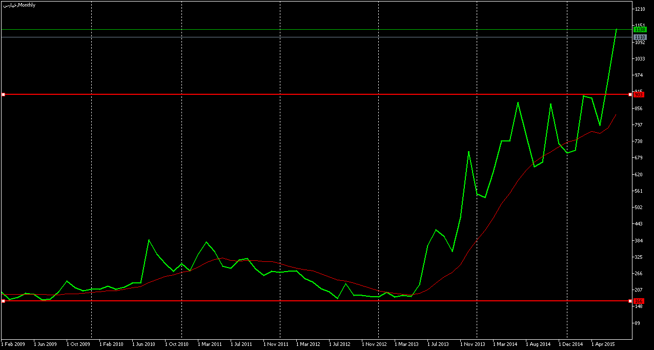 سمگا از جمله سهمهایی که از 100 سال 90 به 1200 در سال 93 رسید که خرید کمی هیجانی بود .در نمودار هفتگی آن وجود کف دو قولو در حوالی 589 را مشاهده میکنیم. این سهم در حال حاضر دارای NAV حدود 880 میباشد که انتظار میرود با رشد شاخص بالاتر برود. در 669 دارای حمایت خوبیست که انتظار برگشت میرود.750 800 914 مقاومتهای بعدی سهمند .